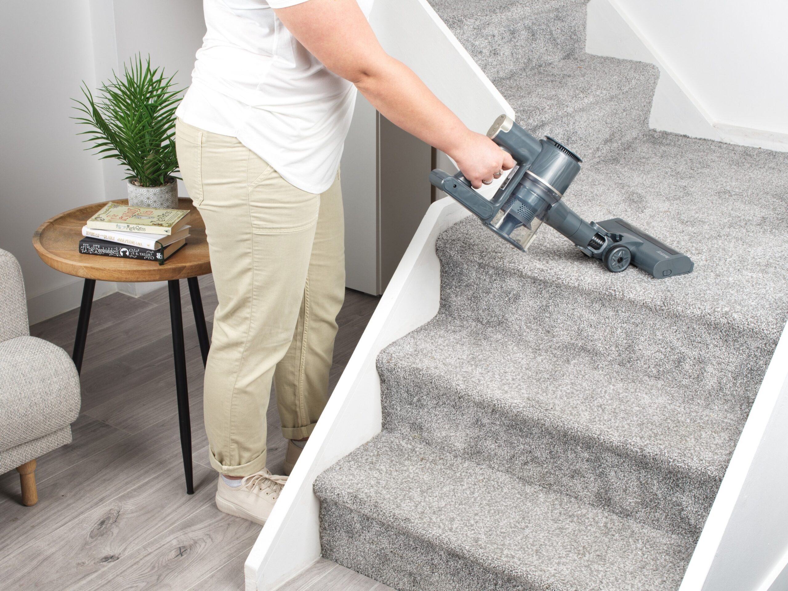 Denne støvsuger er perfekt til trapper og biler, kan omdannes til en håndholdt enhed og inkluderer et 2-i-1 sprækkemundstykke til præcisionsrengøring.