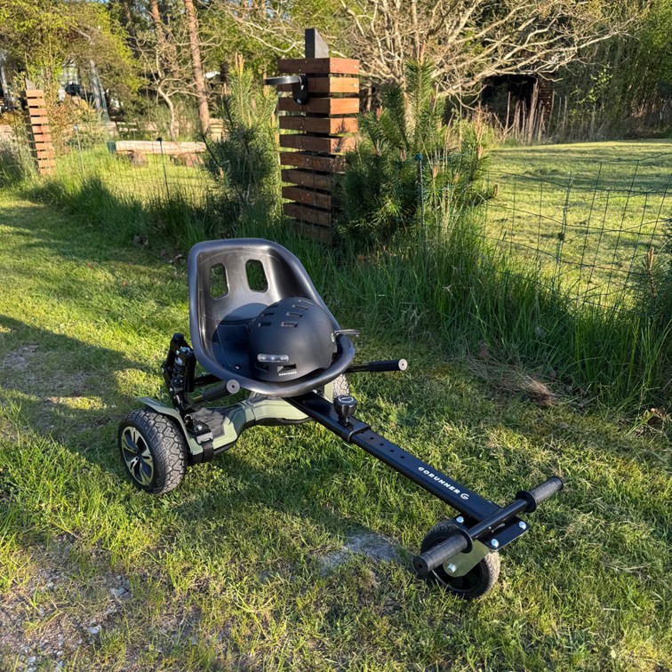 Kart’n monteres på dit Hummer Segboard, og du styrer med hænderne, både retning og hastighed.