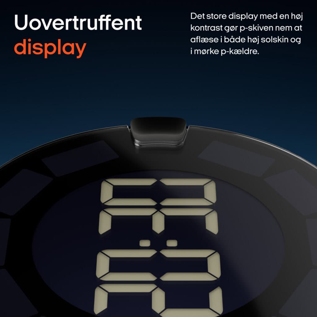 Med sin højkontrastsskærm er p-tiden nem at aflæse, hvad end du parkerer i en mørk p-kælder eller på en parkeringsplads i det fri på en solrig dag.