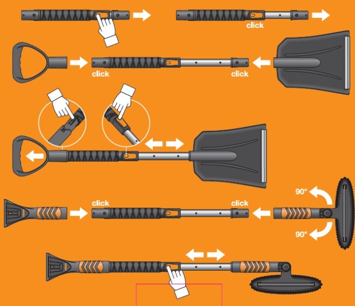 • Sne-børste: fjerner tung sne hurtigt uden at ridse ruder; kan drejes 180°. 26cm blad