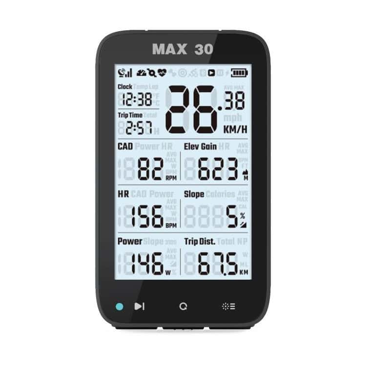 Opsætning tager kun få sekunder – tilslut sensorer, tilpas dine skærmbilleder, og du er klar til at køre. Den brugervenlige grænseflade og intuitive knapper gør MAX30 ideel til både begyndere og erfarne cykelryttere.