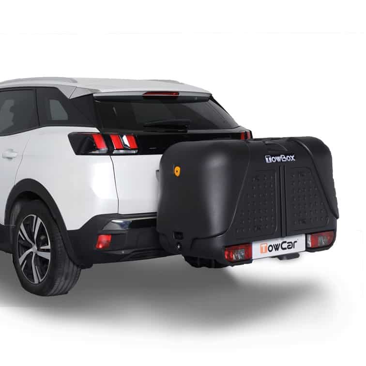Towbox V2 har en volumen på 390 liter og maks 50 kg last. Dvs har din bil et tilladt kugletryk på fx 80 kg må du laste 44 kg i boksen.