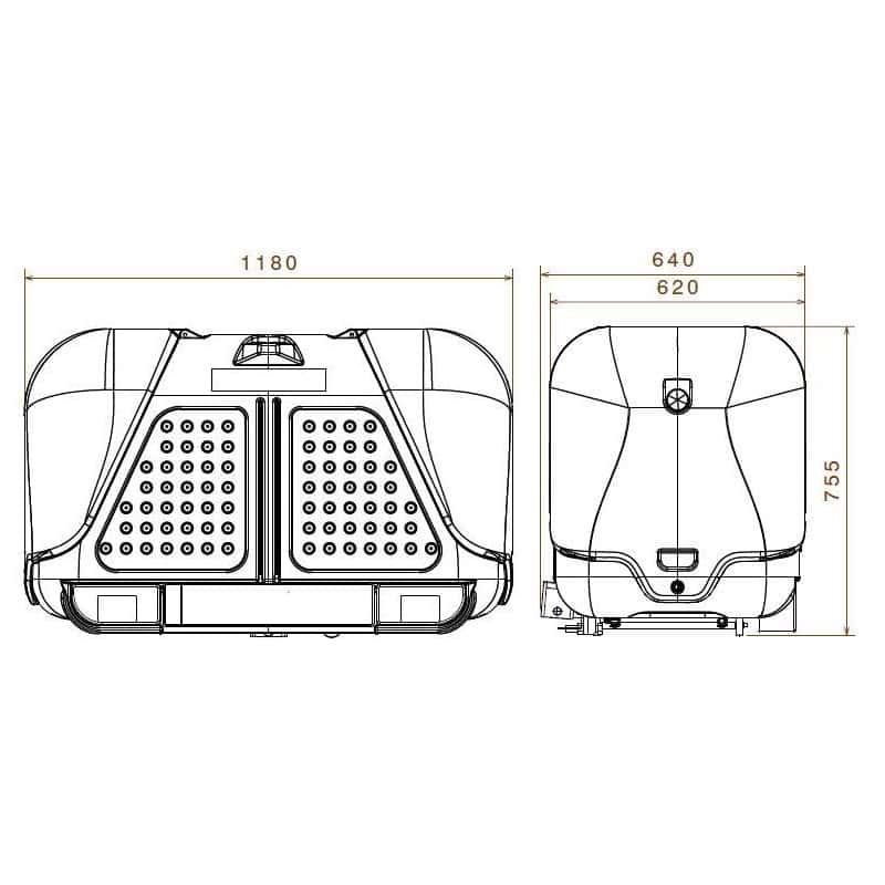 - Udvendige mål (BxHxD) 1180 x 755 x 640 mm